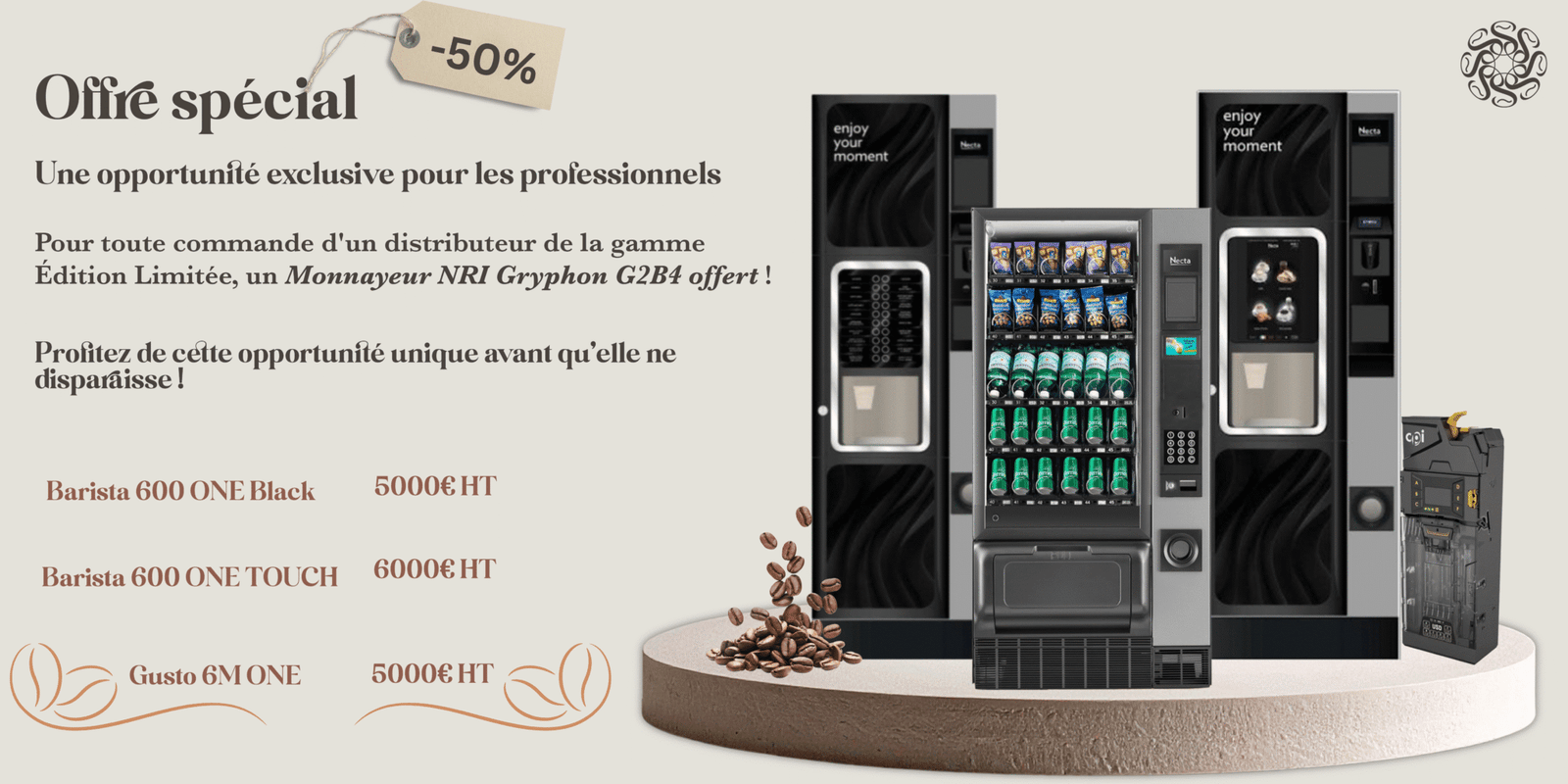 Nous proposons une large gamme de distributeurs automatiques et de machines à café professionnelles, conçue pour répondre précisément aux besoins des bureaux, hôtels, commerces et espaces publics.
