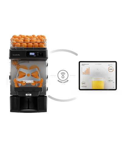 Le nouveau Versatile Pro avec PulpOut System est le presse-agrumes le plus autonome avec le meilleur rapport espace/efficacité.